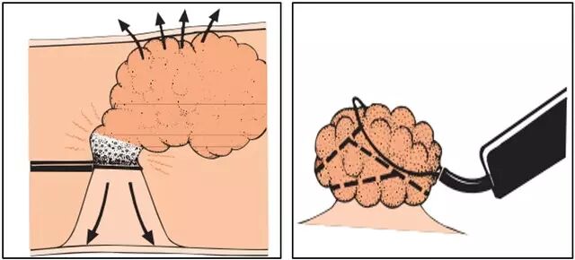 操作时应注意每一块切除病变区域之间应有少量重叠,对少量残留病变可通过热活检或氩离子凝固术烧灼处理。上述方法由于采取的是分片切除的方法,对技术要求较高,后续病理评估也将受影响。