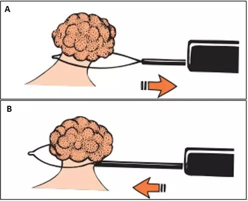 图 6 收紧息肉过程中,前后抖动圈套器,可使圈套器最后勒紧于蒂部合适位置1