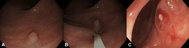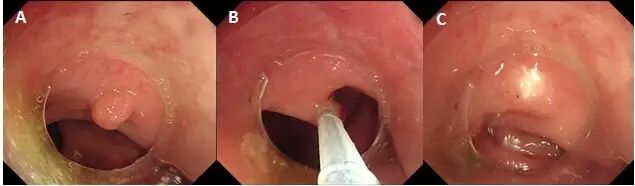 当息肉性质已知,且为良性、低度恶性/非浸润性病变时,为缩短治疗时间,减少并发症,可对病变实施诸如内镜下氩离子凝固术(APC)、高频电凝术和尼龙绳结扎等治疗以祛除病变,未进行回收病理评估。