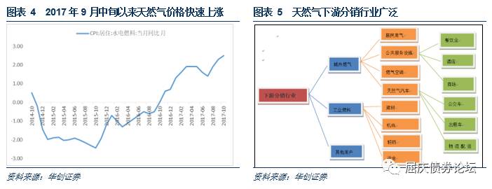 天然气价格疯涨或将抬升CPI。天然气下游行业分布较为广泛,包括城市用气,工业燃料用气以及其他用气,城市用气中出了居民生活用气外,各类公共服务设施用气,包括餐饮业、酒店、商场等,工业燃料用气主要包括建材、机电、轻纺、冶金等行业。一方面,天然气价格增长直接表现为水电气分项价格增长。水电气这一分项占CPI的比重为5%,如果假设水电气各占三分之一,则天然气分项占CPI的比重约为1.67%。11月份以来,主要天然气厂商出厂价格增长了83.32%,虽然民用天然气受政府补贴,价格上涨不明显,但是包括餐饮业、酒店、汽车用气等非民用天然气面临涨价的风险,天然气价格的疯涨对CPI的影响不可忽视。