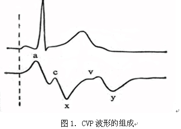 CVP主要反映右心房内压的变化,CVP波形一般由正向波a、c、v和负向波x、y共5个波组成(见图1)。
