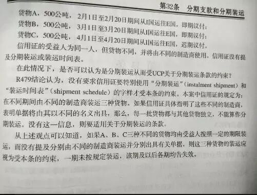 咫尺:两案例,个人认为均不适用32,因为不是装运表,即某个分期发多少货物支款多少