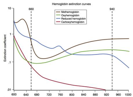 脉搏血氧饱和度仪只能产生两种波长的光线,因此只能测定两种血红蛋白,及上述氧合血红蛋白和还原血红蛋白,而碳氧血红蛋白和高铁血红蛋白能够导致脉搏血氧饱和度仪产生严重的错误,碳氧血红蛋白使SpO2测定结果偏高,而高铁血红蛋白使SpO2测量值总是接近85%。
