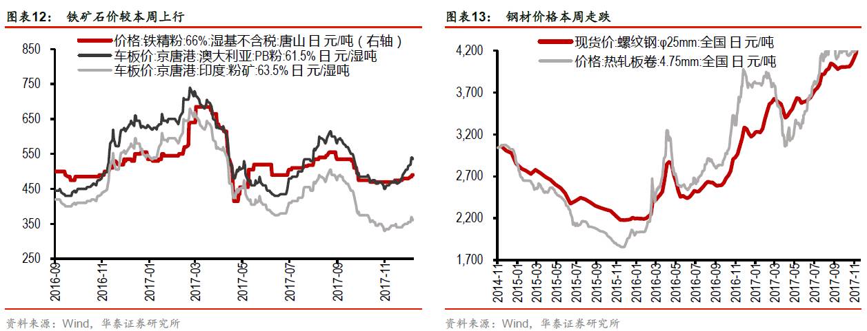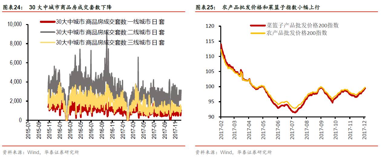 主要工业品价格11月基本均实现环比正增长,环保限产仍然是影响四季度工业生产价格的重要变量之一,我们预计冬季采暖季限产政策对供给的压制下,近期价格仍可保持稳健。PPI至年底环比增速有望仍为正值,但同比增速将缓慢回落。