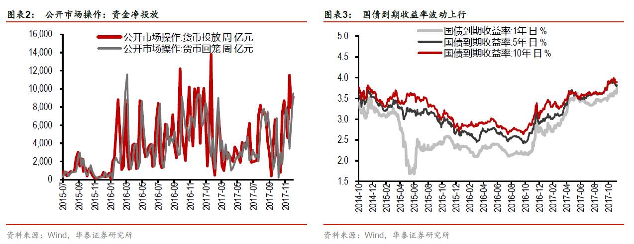 12月MLF到期量共计3750亿元,6日、16日分别到期1880亿元和1870亿元。12月6日,央行公开市场操作MLF投放1880亿元,仅对冲当日MLF到期量。我们认为,央行有可能是为自己预留了跟随加息操作的时机,也就是在美联储宣布加息之后大概率一并提高未来MLF利率和逆回购的利率。我们认为,央行是否跟随美联储加息不仅需要考虑美联储是否加息,更重要的是需要关注美联储对于2018年加息次数的预期引导。