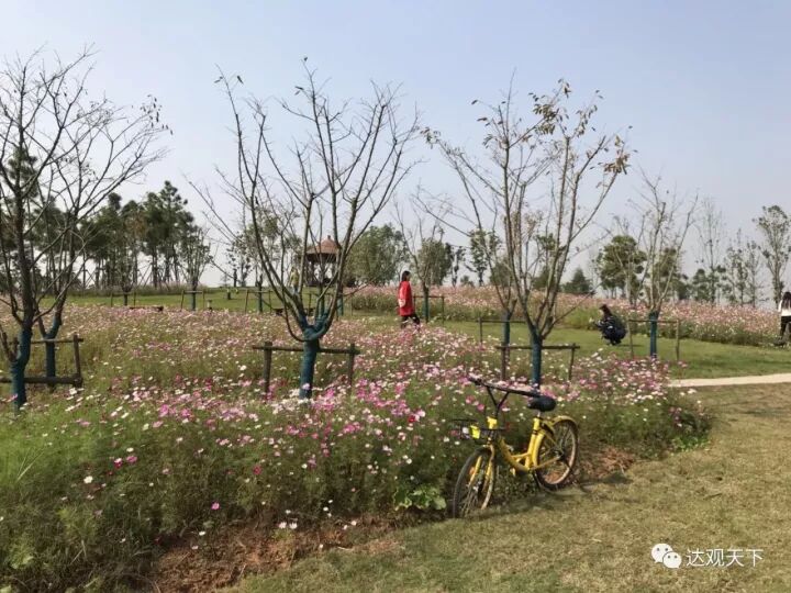 白天的西苑公园是一片花海,除了随处可见的各色菊花,市民还能走进粉黛满坡的各色花田中,感受秋色静美。