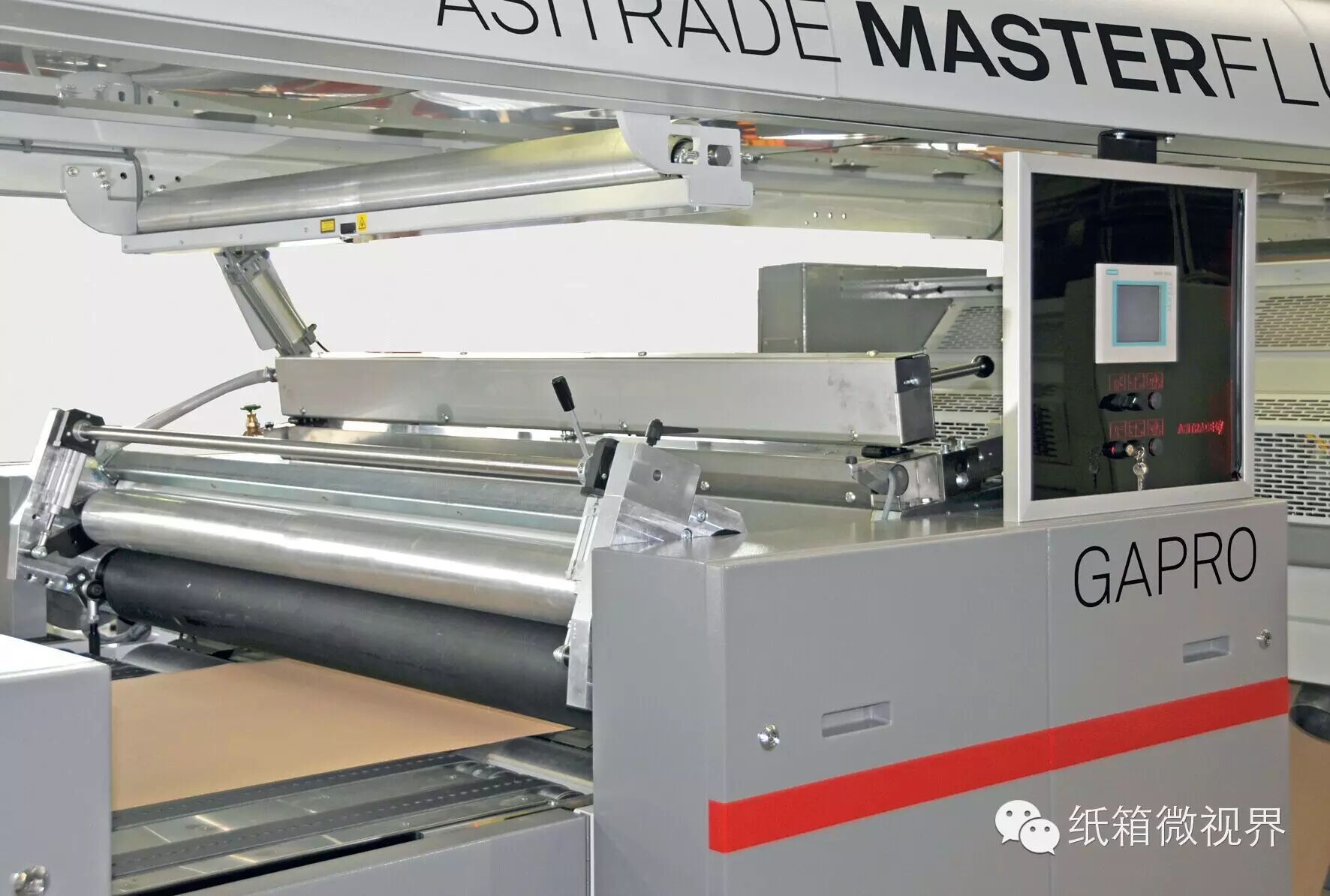 Masterflute复合裱贴机安装Gapro上胶喷头是标准配备。现在已经安装在75个单元上,是一种成熟的广受欢迎的产品。由于Gapro提高了它生产的纸板的平整度,所以它无需捆包堆垛机和捆包转向装置。Gapro更加精细的上胶,准确地定位于楞形的顶端,最终消除了搓板印,控制了曲翘,在模切前就确保减少了固化时间。Gapro不但提高了纸板质量,而且通过粘合剂用量的减少,降低了成本。Gapro上胶喷头操作简便,生产时也可设定和调节,保养简单,仅需快速简单的清洗。