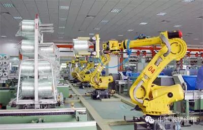 更加令人惊叹的是,巨石不断对生产线进行改造,除了自动化的生产线外,车间里需要人工完成的工作已经基本都换成了机器,自动化程度和人均劳动生产力迅速提高。记者在三分厂的生产车间里看到,重达15~20公斤的4个玻纤成品从生产流水线上完成自动贴标后,由竖着4组“手指”的机器人从传送带上搬下,等待下一步集装和仓储。如此整齐划一的动作、迅速有序的流程让人为之惊叹。
