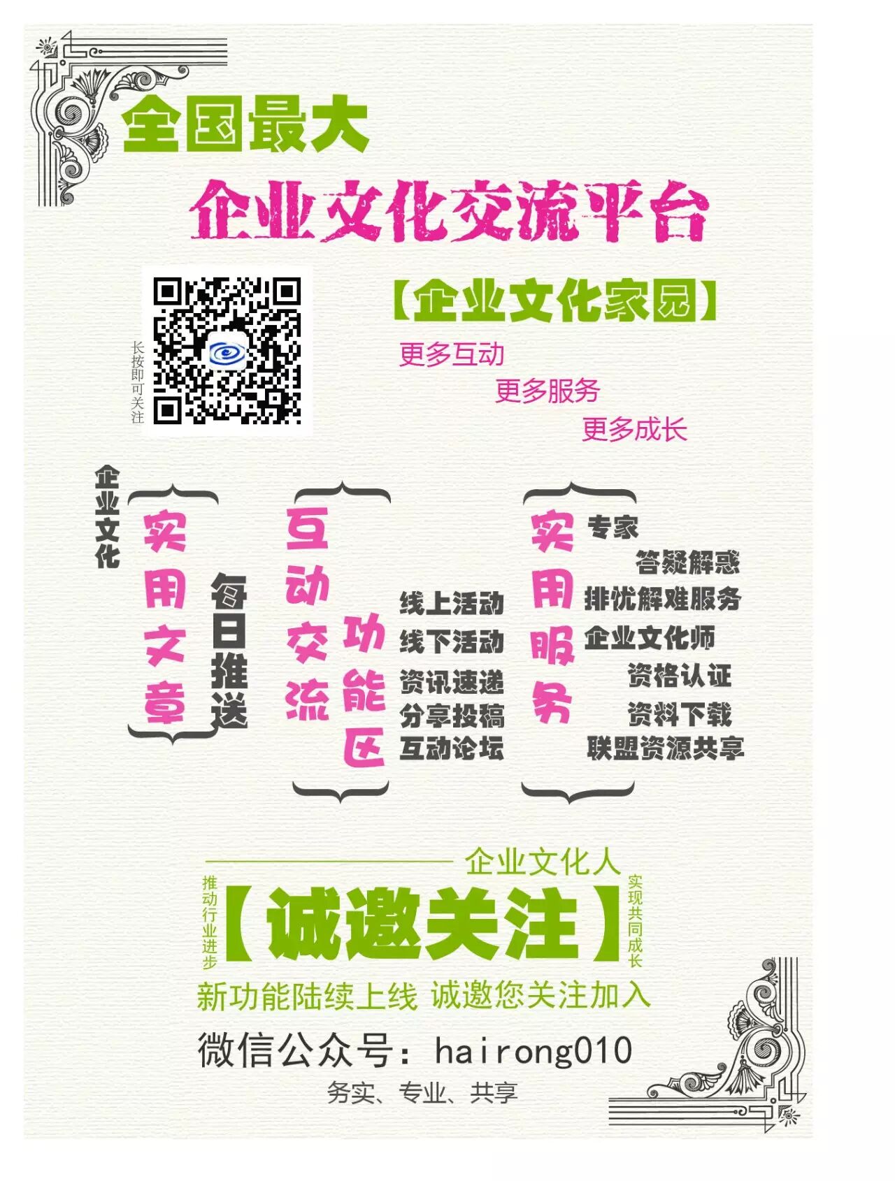 企业文化传播是一个自上而下、自下而上的过程,通过多形式、多角度的沟通渠道搭建立体化的传播网络,让员工始终处于文化传播的接受点和传播点,是企业文化传播内化于心、外化于行必不可少的途径。