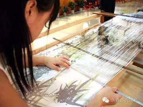 “是真非真画非画,经纬既见分纵横。”创作于隋末唐初、延续近千年,有“隔帘观月,雾里看花”的美感,与杭州丝织画、苏州缂丝画、四川竹帘画并称为中国的“四大家织”的永春纸织画。纸织画近看纸痕交织,好像一个又一个有规律的色块。远看就像是有一层薄薄的纱覆盖在上面,如同仙境,若隐若现。举世闻名的中国画以其独特的笔墨韵味表现世间物象,可谓东方一绝。而纸织画把一幅中国画用特制的利刀,切成宽仅二毫米、头尾不断、细长的纸丝作为经线,用与经线一样宽的纯白宣纸丝作纬线,再像织布一样放在特制的纸织机上穿梭交织,然后裱背成画。