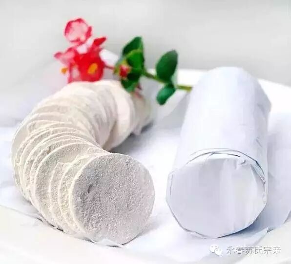 白色的大米面饼直径约5厘米。需先把它们一片片沾满了冷水,泡软了再下锅煮,不然煮不熟。煮好了之后直接加白糖就可以了,很简单的一道小甜品。味道很古朴,有股大米的味道,QQ的,软软的。