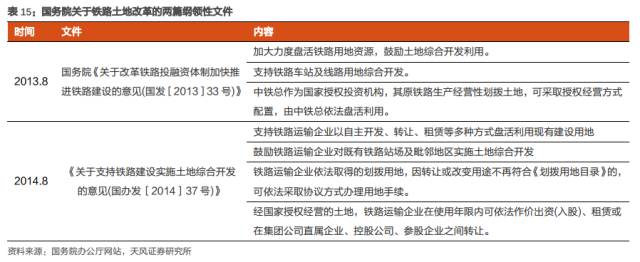 ,国家就铁路土地开发事宜连发两篇纲领性文件:分别是著名的13年33号文以及14年37号文,明确表态支持国家铁路土地以自主开发、转让、租赁等多种方式盘活。然而在此之后,,铁路土地开发的进程推动反而略显停滞。