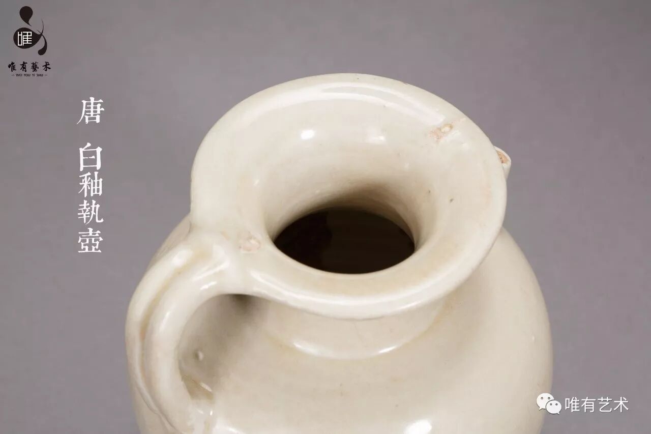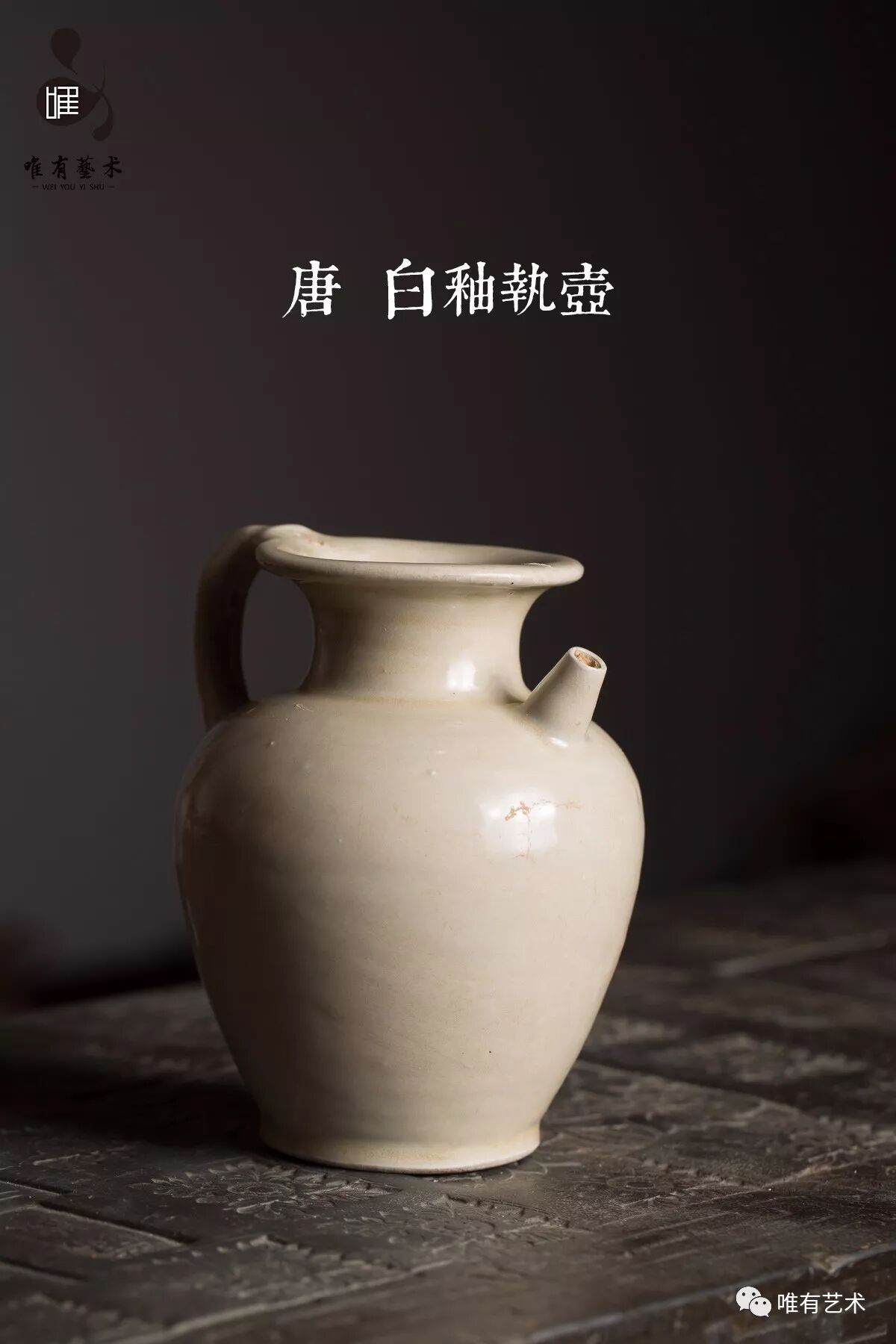 巩县瓷器天下白,此执壶器型饱满敦实,有盛唐金银器物之风。釉光温润如玉,通体无开片。实属少见的的唐物美器。。