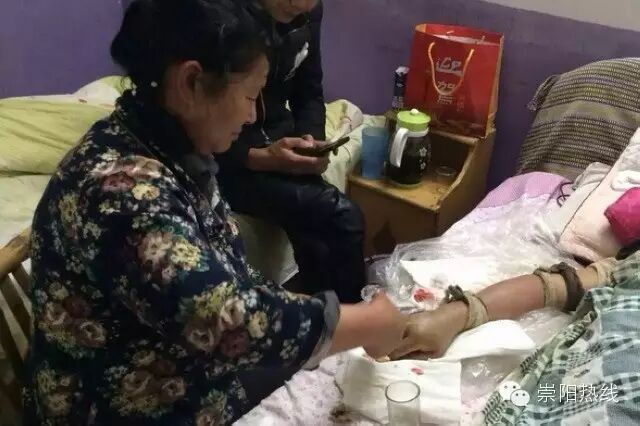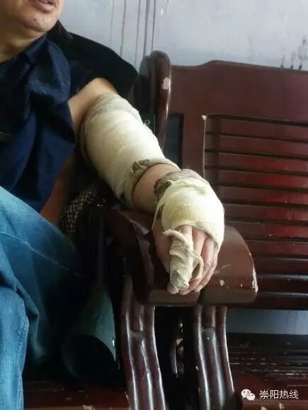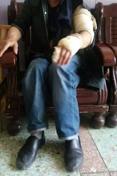 记者看到,他的左手缠着绷带,每隔一段时间,该诊所负责治伤的医师杨秋霞给他检查一次,换一次药。