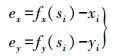 根据式 (12) 计算得到两个方向的误差ex、ey,则该点处的拟合误差为