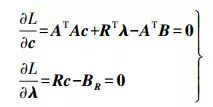 根据式 (9),构造Lagrange函数L(c, λ)=||Ac-B||+2λ(Rc-BR),由求多元函数极值的必要条件得