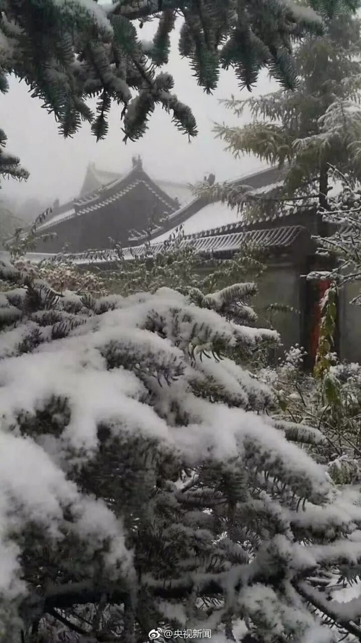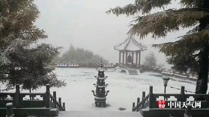 10日凌晨起,五台山景区也迎来入秋以来的首场大范围降雪,景区的寺庙古建、红墙碧瓦掩映在一片洁白之中。上午10点左右,景区中心区地面积雪已经全部融化,但山顶仍被积雪覆盖。未来两天五台山天气将以多云为主,伴有3到4级西北风,最低气温将下降到零下2摄氏度左右。
