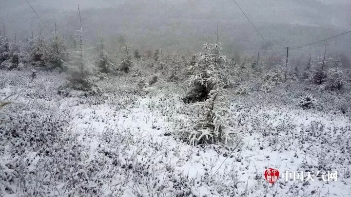 北京延庆小海坨山,2022年北京冬奥会赛地之一,海拔2199米,气温比平原地区低,加上连着两日降雨降温,达到积雪条件。在延庆,每年11月至来年的5月,都会出现“海坨戴雪”景观。