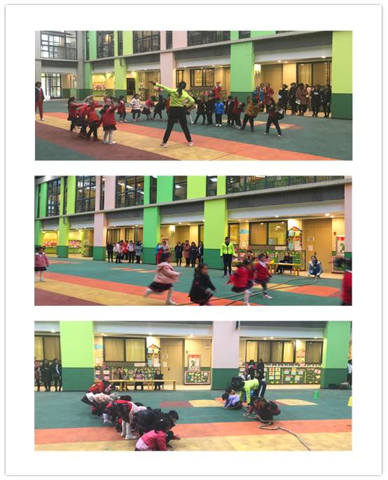 大班的科学活动《磁铁的穿透性》,教师让幼儿自己动手去发现磁铁的磁性作用关系,借助周围生活中的现有材料,幼儿积极开动脑筋、大胆尝试、操作,想出各种好办法。活动中教师充分调动了幼儿学习的积极性、主动性、创造性,体现了“以幼儿为主体,教师为主导”的教育理念,使每位听课老师都有很大的收获。大班的健康活动《好玩的绳子》,教师利用两条绳子,通过制作不同难度的波浪,逐渐增加难度,锻炼了孩子跳跨的能力。活动最后有机的利用绳子带领幼儿做放松运动,让幼儿在一种轻松愉快的氛围中得到放松。
