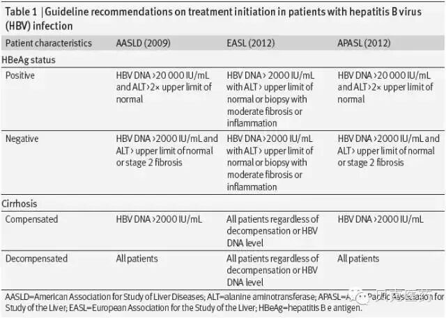 决定开始治疗是以治疗目标为基础的,包括HBV DNA水平的抑制、ALT水平的正常化、HBeAg阳性患者的HBeAg血清转换以及患者特征(如有无肝硬化、HBV非活动携带状态)等等。