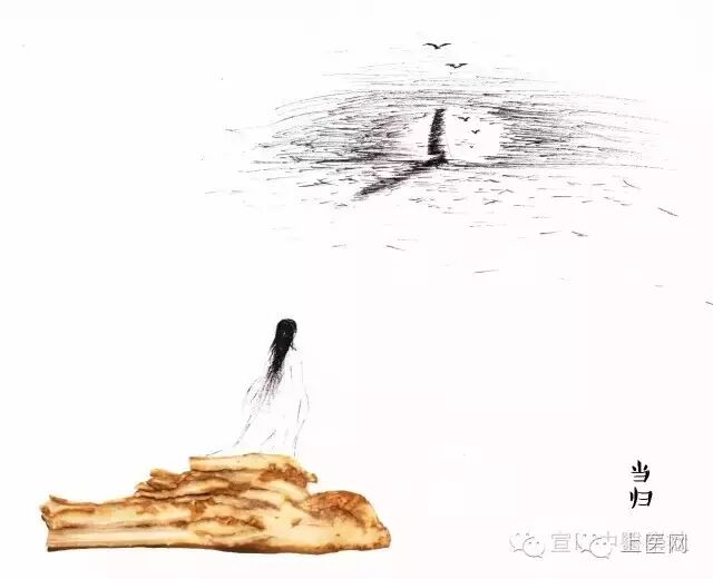 注解:《神农本草经》云:当归,味甘,温。主咳逆上气,温疟寒热洗洗在皮肤中,妇人漏下绝子,诸恶疮疡,金疮。煮饮之。功效概括:补血调经,活血止痛,润肠通便。