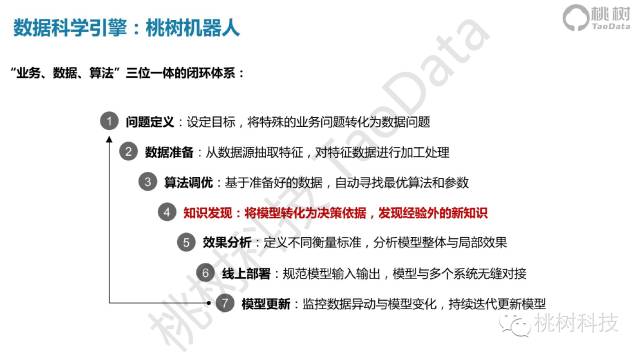 “问题定义——数据准备——算法调优——效果分析——模型部署——模型更新”是数据科学家工作的七个基本步骤。这数据科学七剑的有机配合,才能使数据价值最大化。并且,数据科学闭环体系意味着当模型需要更新时,问题往往也需要被重新定义,而这个重复的过程往往能带来解决当前问题以外更大的知识发现。