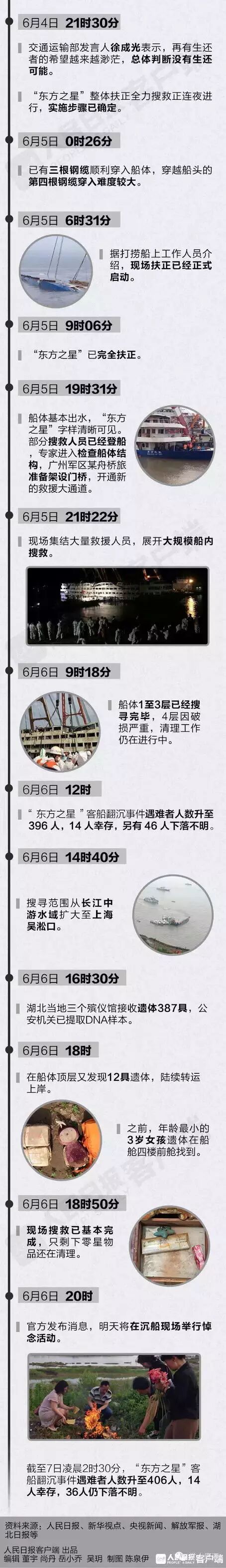 今天是遇难人员“头七”祭奠日。据央视,前方指挥部消息,截至昨晚6点,遇难者人数已升至406人,有14人生还,仍有36人下落不明。明天,前方指挥部将在沉船搜救现场举行悼念活动,以人员默哀、船舶鸣笛的形式,表达对逝者的哀悼。