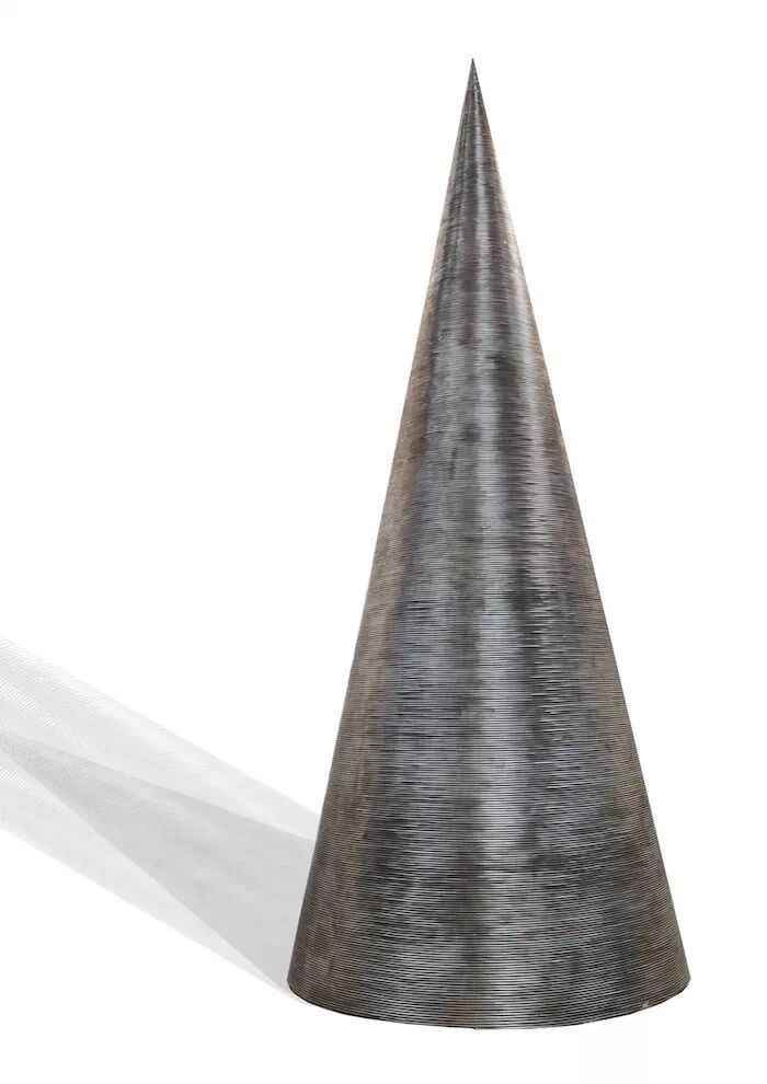 将1000米长的钢筋盘旋焊接成一座3米高的塔形圆锥体,通常,两点之间的一段距离在我的我的想象中是一条线段,而这条线段如果发生弯曲,并且以螺旋上升的姿态存在,则成为了一个体积。用这样的方式,我为1公里的距离做一个纪念碑。
