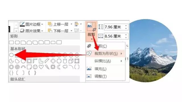 再次选择【裁剪工具】-【裁剪为形状】-【椭圆】,即可将图片裁剪为正圆形。