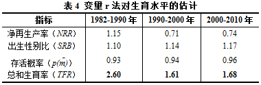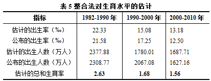 中国人民大学陈卫教授依据普查数据,基于广义稳定模型变量r法、整合法等间接估计方法,估计1982-2010年各普查间的生育率。具体估计结果见表4、表5。