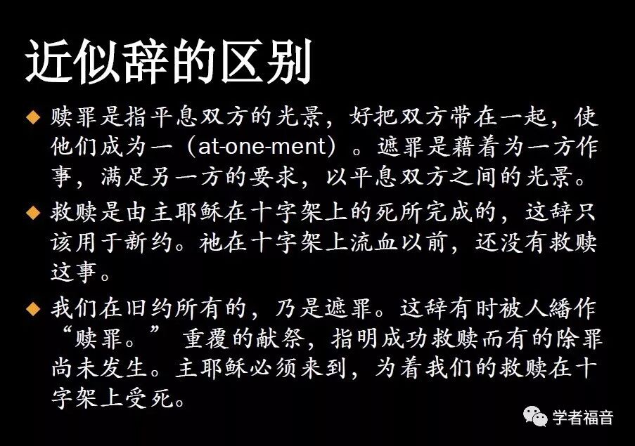 旧约的遮罪,与新约的救赎是不同的。在旧约里是遮盖罪,却没有除去罪。旧约中这种对罪性和罪行的遮盖,乃是遮罪。在新约里是除去罪。“看哪,神的羔羊,除去世人之罪的!”(约一29。)这里的“罪”是罪性和罪行的总和。罪不是遮盖了,乃是除去了。这乃是救赎。