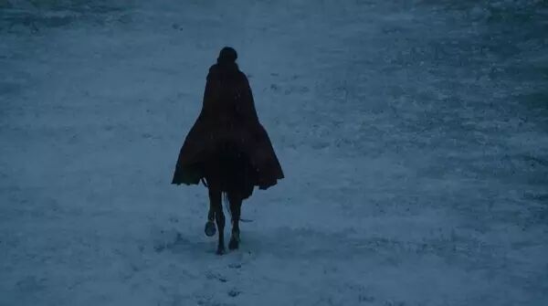 而梅姨刚刚被雪诺驱逐出临冬城,骑马往南走了。