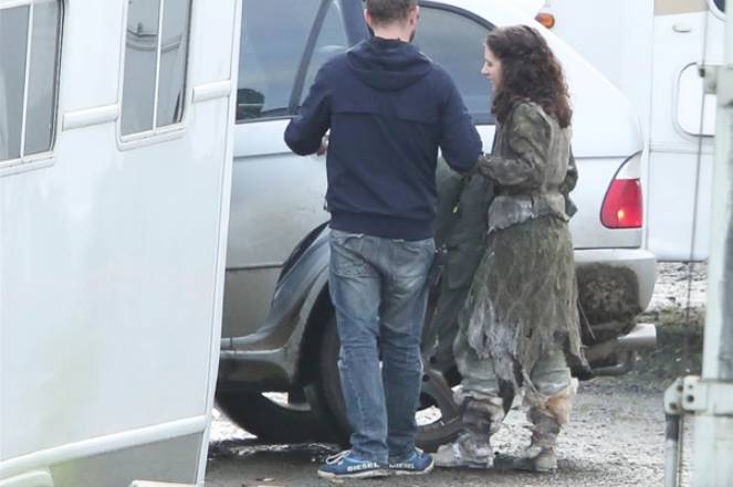 另外一张照片显示,Theon被雪诺揪住了领子。显然是在斥责他攻下临冬城这个对Stark家族的背叛。不过雪诺也知道是Theon救下了三傻,所以也就没把他怎么地。