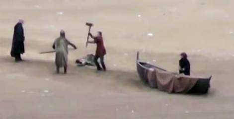 而战败后Theon的去向也十分清晰,前方发来的狗仔队照片显示,Theon在岸上被手下的将领群殴,显然大家把海战的失利归结到了他的身上。