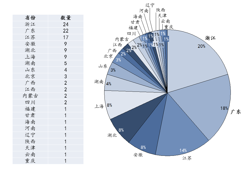 在出问题的平台里,浙江、广东、江苏的数量最多
