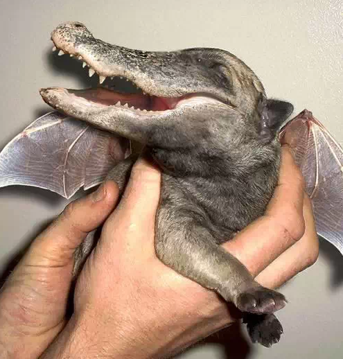 此生物实系蝙蝠鳄幼狗,成兽身长约85公分,重30-45公斤,有薄膜翅一对,飞行力不强,大多以滑翔方案飞行。肉食性,生性凶猛,但天生近视,短视而且暴躁。平均寿命15年,成长成兽需时1年8个月。长年居住温带丛林高处。属於爬虫类,狗蝙蝠亚纲,鳄狗目,犬科,拟犬蝠属,真狗鳄种。在北美洲东南部与南斯拉夫和法国南部一带有出现的纪录。台湾地区的中央山脉曾发现其正在猎捕樱花勾吻鲑,并有拍下照片,当前该照片由私人收藏。为地球原生种生物,估计已在地球存活将近七亿五千万年,现今已濒临绝种。看了照片真是让人震惊呀。
