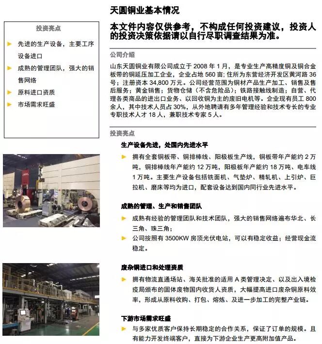 1、山东天圆铜业有限公司成立于2008年,注册资本34800万元,位于东营市东营区黄河路36号,截至2016年8月31号,企业资产总额578224.43万元,负债总额1045233.55万元,资产负债率180.77%。
