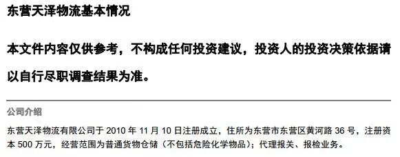 6.东营天泽物流有限公司成立于2010年,注册资本500万元,地址:山东省东营市东营区黄河路36号。截至2016年8月31号,企业资产总额4600.61万元,负债总额4444.71万元,资产负债率96.61%。