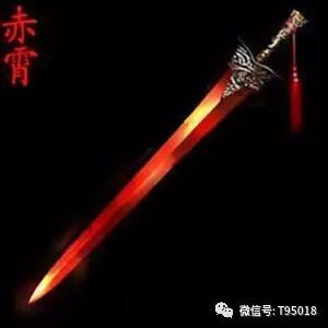 帝道之剑。汉高帝所得,铁,铭曰赤霄大篆书,三尺,高帝以秦始皇三十四年得于南山及贵常服之斩蛇。汉高祖刘邦凭此剑于大泽怒斩白蛇,开始其帝王一生。。剑身仿秦剑。秀有花纹、饰有七彩珠、九华玉的寒光逼人、刃如霜雪的宝剑,剑身镌刻两个篆字:赤霄。“斩白蛇、提三尺剑立不世之功”都指这把剑。