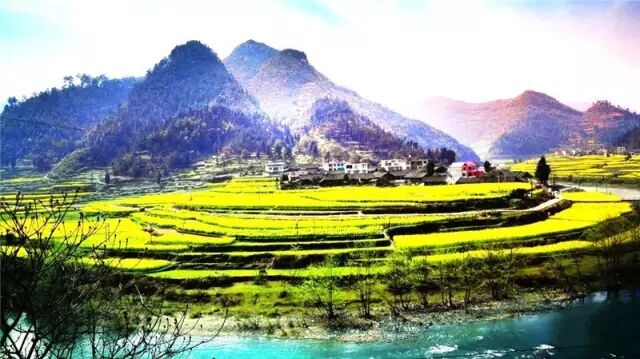 山与水的完美交融,情与景的交相辉映,大自然的鬼斧神工,金灿灿的油菜花绽放在郭家湾的万亩梯田里,不仅成为春天里的一道别致景观,更是孕育着丰收的希望。