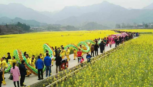 每年的2月中下旬—3月油菜花竞相开放,“油菜花开满地黄,丛间蝶舞蜜蜂忙;清风吹拂金波涌,飘溢醉人浓郁香。”形成了一道天然的沿江农业景观带,美不胜收,吸引八方游客。
