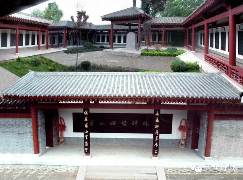 商山四皓碑林园,位于丹凤县城西7.5公里的商镇西街,属省级重点文物保护单位。