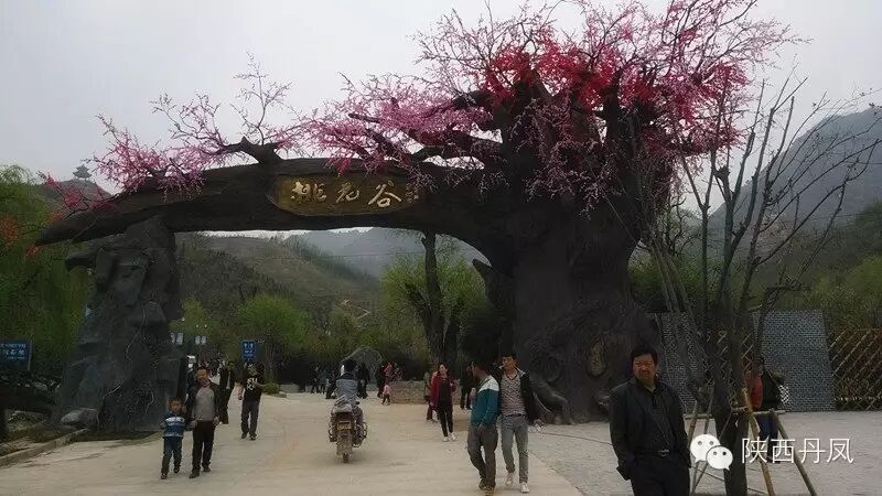 桃花谷风景区位于陕西省丹凤县竹林关镇,沪陕高速旁边。景区明代设巡检司,清代建丹水县;自设商密古国始,商贸活动频繁,水旱交通发达,是“水膛通荆襄,骡马入蓝关”的水旱大码头,其骡马古道一直是长安历代王朝的主要生活物资补给线;民俗文化积淀深厚,是商洛花鼓、“汉二黄”发祥地,孝道文化源远流长,特色明显;刺绣、编织等手工业发达。依托国家水土保持示范园和水利风景区,在“寺台朝日映瞳胧、北岸青烟一望通,红岩落日舟三五、周公桃花古寨红、龙嘴分江清到海、狮子攫月怒生风、天姑沐雨苍岩秀、高歌东岗夜雪中”八景的基础上,开发了竹文化、福文化、桃花文化、古镇文化和商贸文化;初春满山桃花、竹林和松林相映成趣,景区历史民俗文化和自然风光有机交融,是休闲旅游、畅享陕南民俗文化的理想去处。主要景点有:桃花寨、浪漫桃花谷、丹水城隍庙、鹊桥、祈福台、竹林七贤、丹江漂流、梯级水景、桃花仙子广场和游乐场等景观设施。