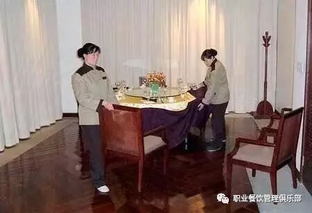 “我建议您,先整理好地面,然后整理落餐台,最后检查餐桌,请按此顺序尽快行动,谢谢。”
