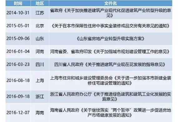 事实上,自2014年开始,即陆续有省份开始推出全装修的政策,2016年,各地出台政策的速度加快,截至目前,全国加入全装修队伍的省(市)已经有8个。