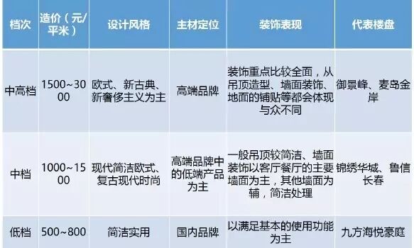 中海的做法是将项目主产品线归类梳理出中高档、中档、低档3个等级,每个级别有对应的设计风格和材料部品配置标准。