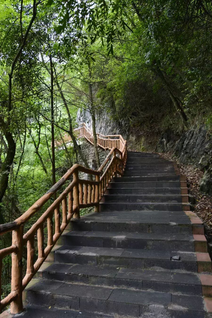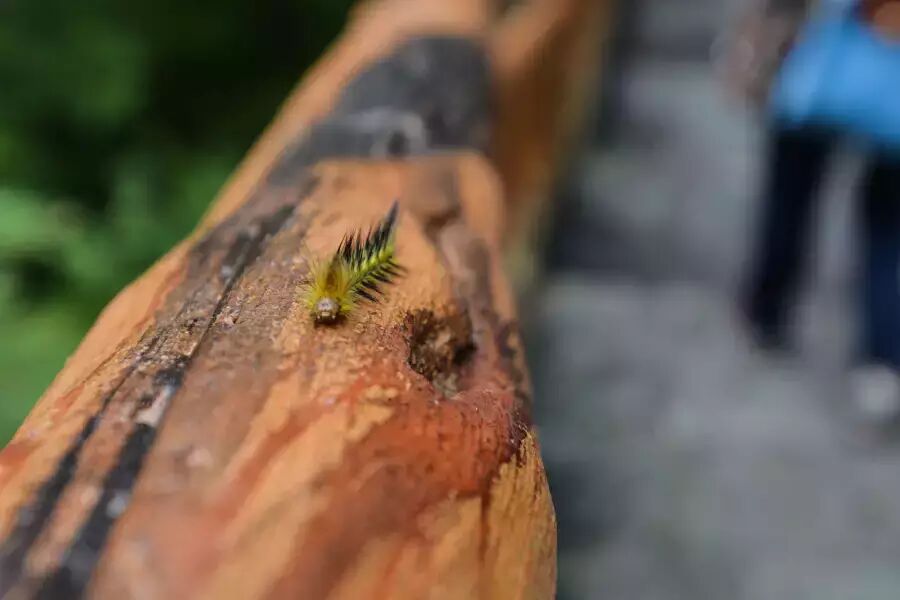 接着就是一路俯冲至谷底的下坡石阶,垂直落差大概有三、四百米。双腿不停地重复着下台阶的动作,直到停下来时还能感受到双腿肌肉微颤的紧张感。步行栈道穿行在谷底,幽静空灵,仿佛走在一条无尽头的植物走廊里,还能遇见几只翩翩起舞的蝴蝶为你带路。行路匆匆,稍不注意就可能遗漏了一只俯趴在木栏上的不知名的小生灵。