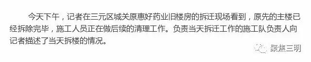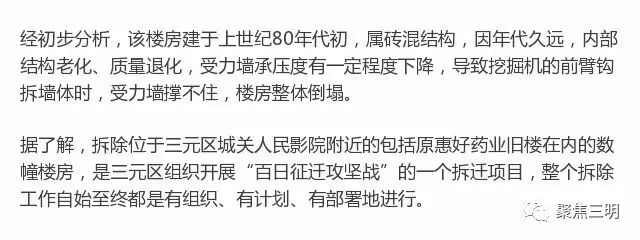 三元区拆迁办主任 夏让东:“那天的视频是真实的,但是没有造成人员伤亡,也没有造成太大的损失,经过这次事件,我们在以后的拆除过程中要制定更周密的安全措施,考虑到更细致的预案,来保证施工作业现场的安全,把拆迁对周边群众的影响降到最小程度。”
