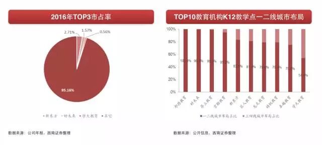 培训机构扎堆一二线城市,三四线城市教学点占比较低,有待进一步挖掘。
