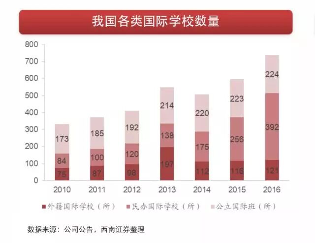据中国产业信息网数据,未来国际学校招生规模将以不低于10%的增速增长,2020年或可达到38.5万人。我们认为,随着本科留学成为主流趋势,留学生更偏向于低龄化,或将扩大对国际学校的需求。